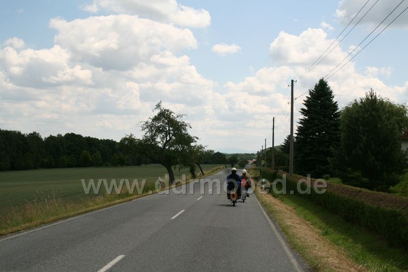 Vielleicht mal zwischendurch so zur Erklärung für die nicht ganz so Ortskundigen: Wenn man sich die D-Karte mal anschaut, bewegen wir uns ja in dem Dreiländereck D-PL-CZ. Dort gibt es einen nach D hineinragenden Landzipfel /östlich Löbau/westlich Dresden, der "Schluckenauer Zipfel" genannt wird und bis Kriegsende zum Sudetenland gehörte. Es war also mal deutsch und man sieht das auch noch. Am Baustil z.B. Landschaftlich gehört es zur Oberlausitz und ist ein Zwischending zwischen Mittelgebirge und Hügellandschaft. Wir waren heute z.B. unterwegs zwischen 306 m ü.NN bis 443m Gefahren von Großschweidnitz über Ebersbach/Sa. (Grenze CZ) nach Schluckenau (Sluknov), was in dem Zipfel zentral liegt. Und wir haben die böhmische Luft etwas mit verbranntem Öl angereichert.