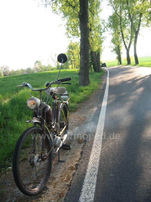 Hallo foppi, tolle Fotosession. Wenn du nicht so viel geknipst hättest, wären wir noch einige Km weiter gekommen.  Die Motorenleistungen sind nach der Winterkur echt stimmig. UT 3 kann kommen! Dann war meine Liebste auch noch verspannt, da ich erst gegen 20.45 Uhr eingetrudelt bin und sie den Korken schon mal selber aus dem Rothschild zerren musste. Schöne Runde, gerne wieder! Viele Grüße, Jürgen Danke für den Sprit! Eines muss ich noch klarstellen. Ich musste nicht mein Moped vor dem Kippen sichern, sondern deinen Patinahupfer. Der Ständer ist ja echt noch überholungsbedürftig.