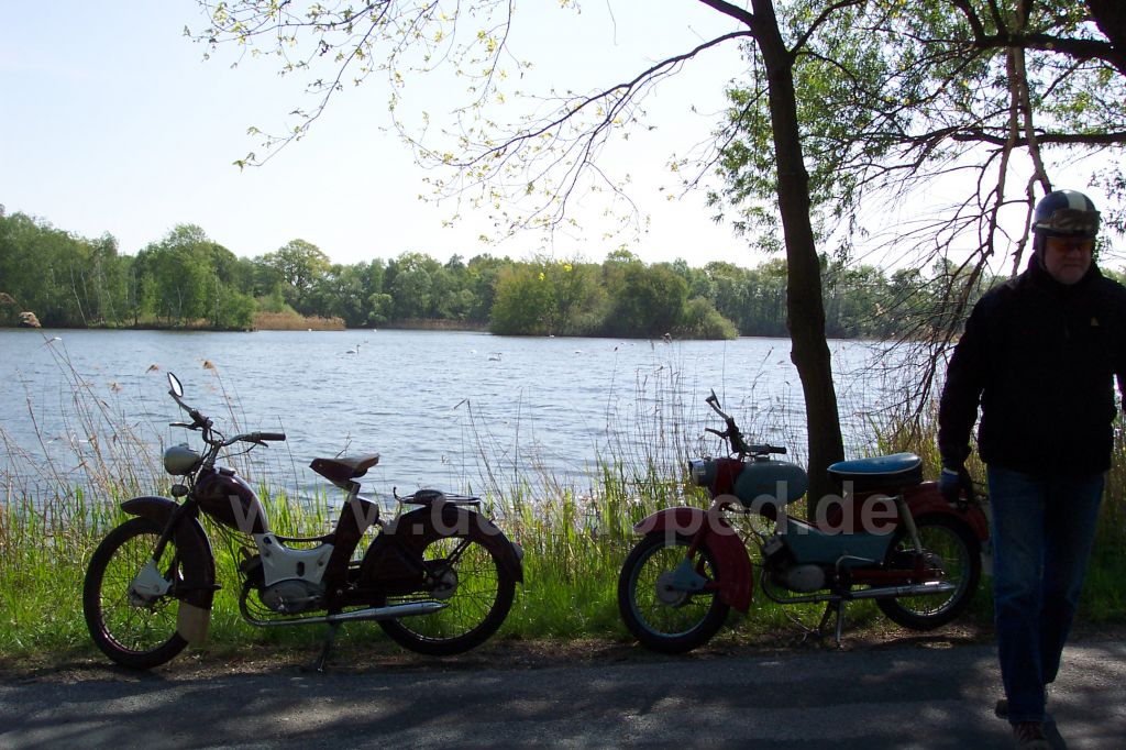 Schöne Bilder Freunde !!! Aber ich kann nichts dafür wenn Euch der Geiz reitet mal irgendwo kurz einzureiten auf nen Drink. Hab heute auch ca. 50 km mit Rainer in den vereinten sorbischen Emiraten abgerissen. Aber eben mit Pause, nen vernünftigen Mittagessen und was zu trinken.  Essifahren ist doch keine Flucht !!!! Unten das Bild da ist schon mal der See. Rainer bringt die Schnapsflasche und gleich liegen wir beide betrunken im Strassengraben. Eben wie immer ... (Ihr Spinner ...hät` ich fast gesagt.)