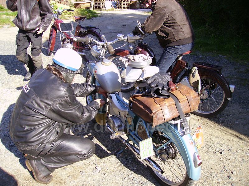 Dann gings gemeinschaftliche Basteln los. Das "Ding" vom Bärtigen fuhr garnicht mehr, Andi hat den Auspuff verloren und bei mir verabschiedete sich der Ständerbolzen...