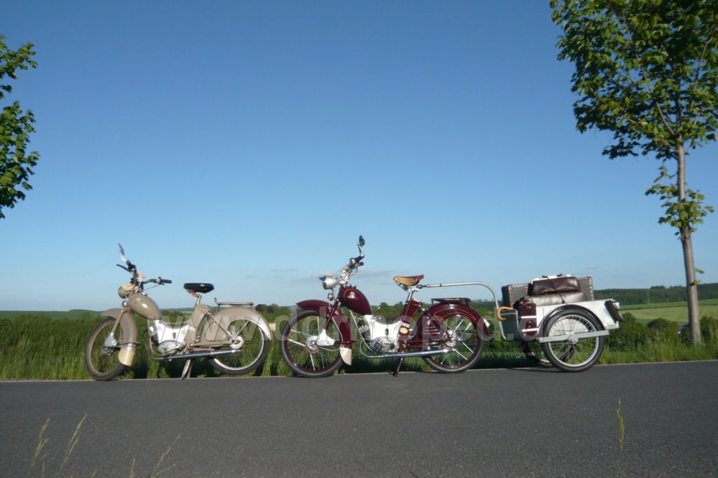 Nehmen wir einfach mal an die Essies standen unten an der Zufahrtsstraße. Die Steigung hätten sie sicher nicht geschafft. (Außerdem hatte ich noch den Hänger mit, das wollte ich dem Moped nicht zumuten.)