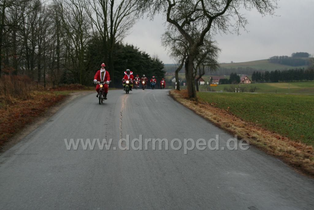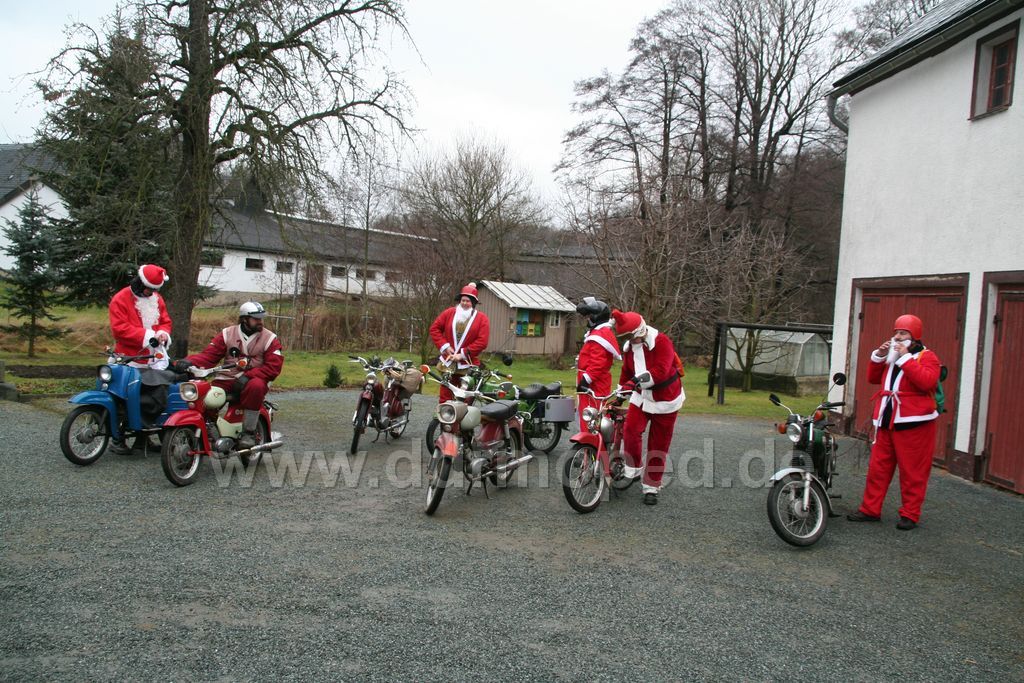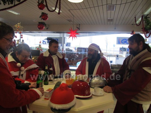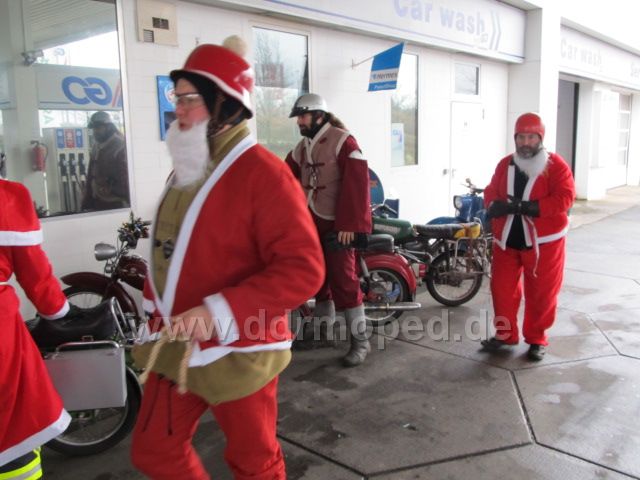 Die Weihnachtsmänner trafen sich. Wie immer. Die Kleiderordnung leidet jedoch mit den Jahren.