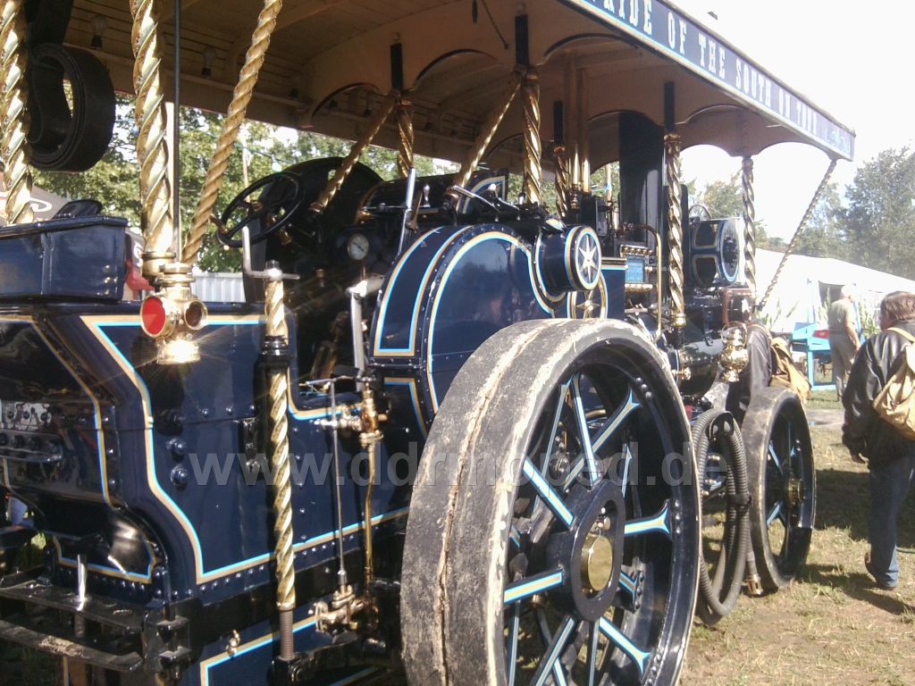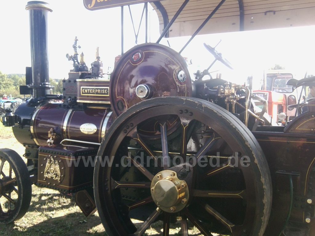 Es handelt sich hierbei um Dampftracktoren. Die Besitzer sind damit aus Holland angereist. Laut Aussage schaffen diese Monster eine Hochstgeschwindigkeit von 80Km/h, und das bei 9 Tonnen Gewicht. Wobei sich diese schon bei 40 Km/h nicht mehr lengen lassen. Also heißt es nur stur gerade aus. wer will schon 9 Tonnen aufhalten?