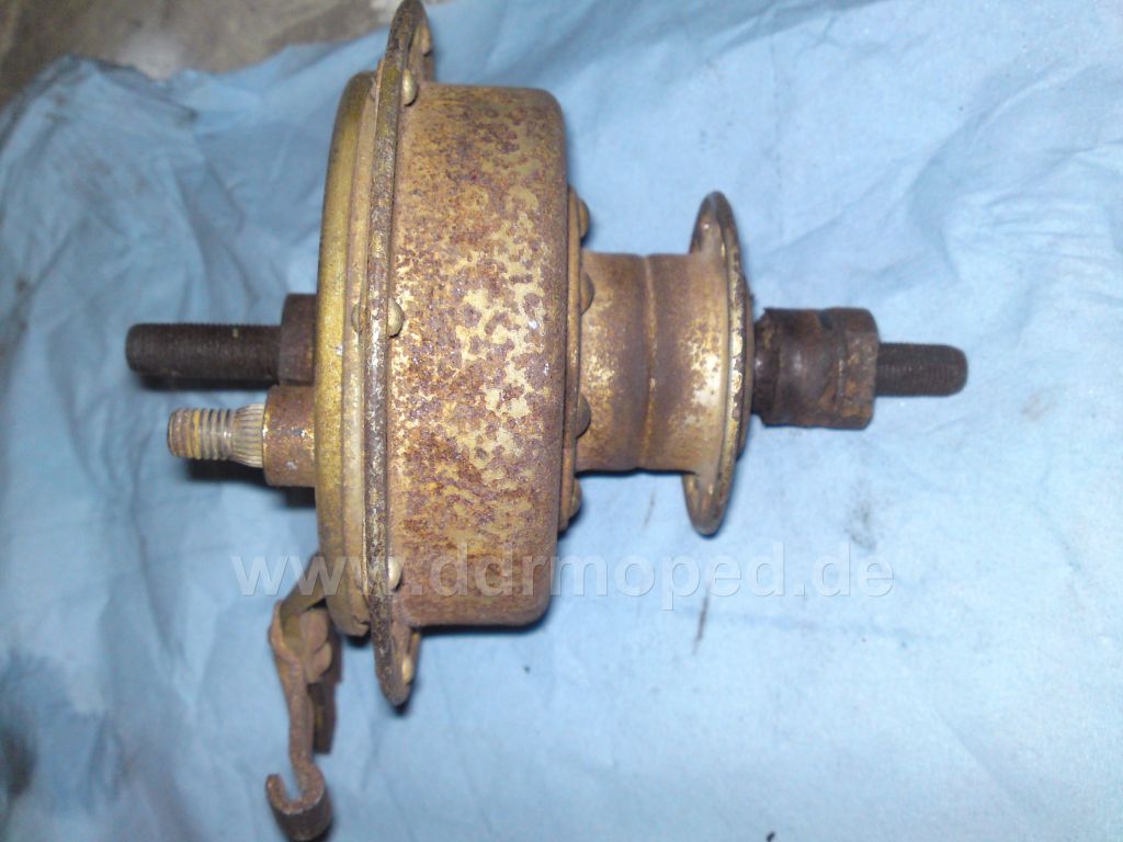 Weiter im Text... Heut hat es mich gewurmt, mich mal mit den Naben zu beschäftigen. Also, im Sammelsurium gewühlt, gesucht, gefunden und naja... Ziemlich verockert die Teile, aber was soll`s... Los ging`s mit dem fröhlichen Entrosten - die Teile sollen ja letztendlich zur Galvanik gehen. Ich denke ich werde sie glanzverzinken lassen, gefällt mir persönlich sehr gut und schont den Geldbeutel. ...Vorderradnabe...