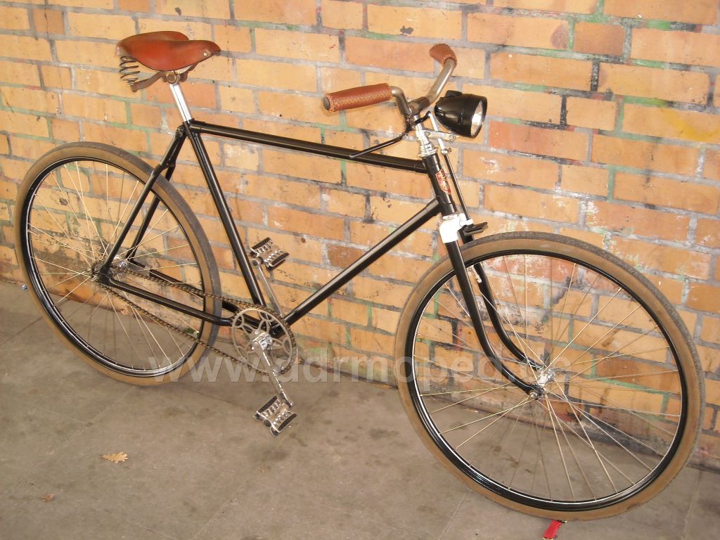 Rücklicht und Rückstrahler sind Originalteile aus den 60ern (gehören aber so wahrscheinlich nicht zum Rad). Die Steckfassung des Rücklichts wurde von Neugierigen Händen zerstört und von einem befreundeten Feinwerkmechaniker nachgebildet.