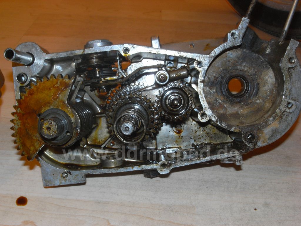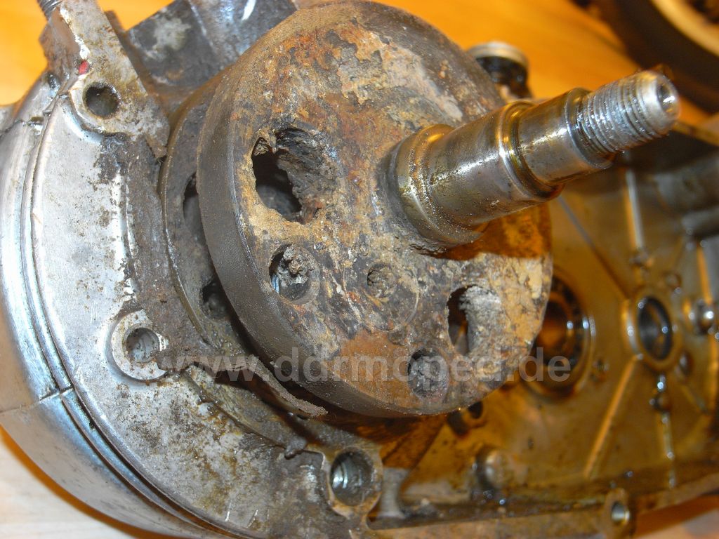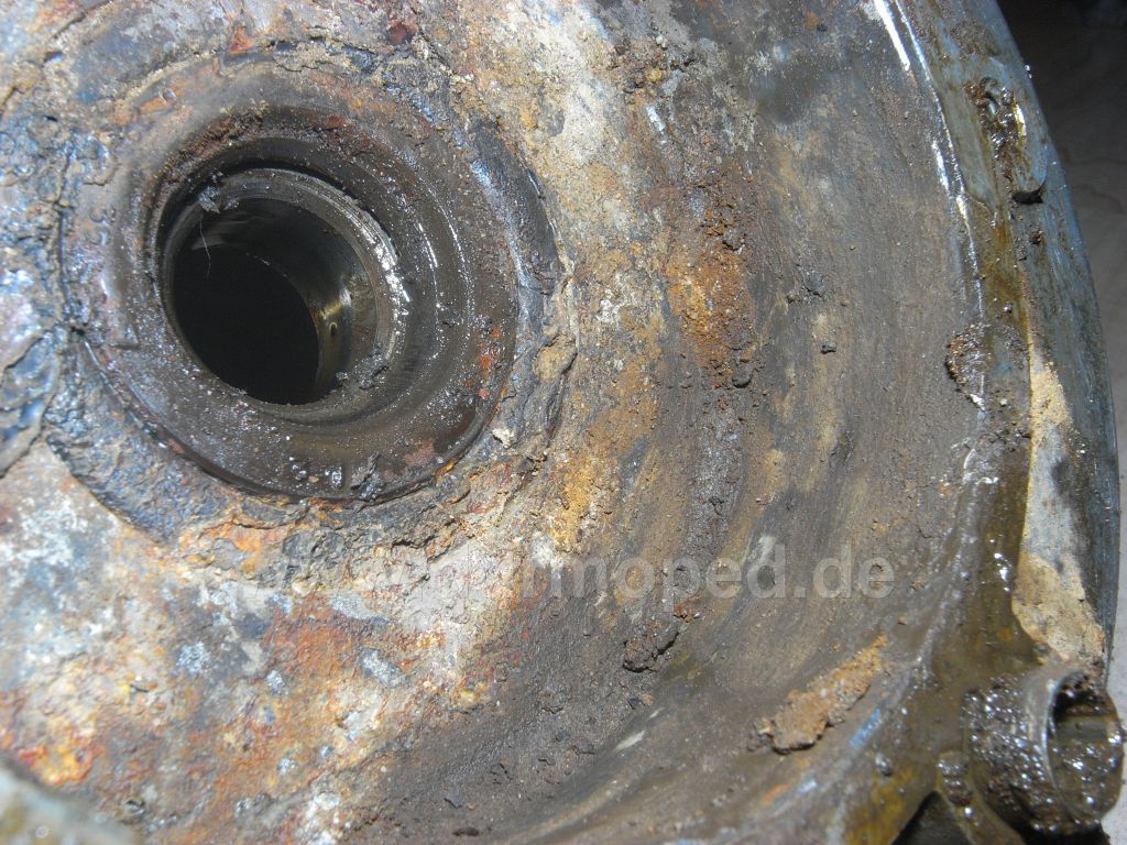 Liebe Simsonskis, es hat ein paar Tage gedauert aber ich habe den Motor endlich so weit auseinander, dass ich ins Kurbelwellengehäuse schauen kann und es sieht darin aus wie aus dem (hoffentlich) angehängten Bild ersichtlich. Krustig erhabene Rostablagerungen, die sich bis in die seitlichen Öffnungen ausdehnen. Die Kurbelwelle sieht ebenfalls so aus, vielleicht etwas besser, da ich aber die Pleuelstange abesägt habe, ist die eh hin. Stellt sich folgende Frage: Was tun? Krieg ich das je wieder hin? Für einen Totalanfänger wie mich ist das eine größere Herausforderung als anfangs gedacht (bisschen putzen, neuer Spiegel und Gasdrehgriff auswechseln und losgondeln), ich bin dazu auch gerne bereit, auch für Investitionen in einem gewissen Rahmen, habe aber keine Lust auf verlorenem Posten an einem kaputten Motor rumzubasteln. Bin also einmal mehr gespannt auf fach- und sachkundige Einschätzungen.  Dank im Voraus,  Gruß Jakob