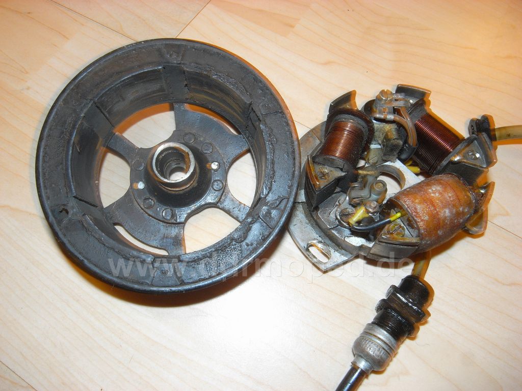 Oh ja und dann gäbe es ja noch die Lichtmaschine...da sieht eine der Spulen so sonderbar aus. Wenn die auch noch Probleme macht am Ende wirds langsam eng mit dem Zaster, dann kostet alles zu ersetzen bald so viel wie ein neuer Motor. Aber ich fänds ja schon schöner, wenn in meinem Star auch in Zukunft sein eigenes und kein transplantiertes Herz schlüge... Sind 154€ für das Teil vor dem Hintergrund der Motorproblematik eigentlich noch als Schnäppchen oder eher als Reinfall zu betrachten (abgesehen davon, dass im ebay-Angebot stand, dass er prinzipiell fahrbereit ist, was ja nun nicht ganz stimmt)? Lack ist ok und ansonsten war bis auf den Gas-Bowdenzug  und einen kapuuten Vorderradschlauch alles dabei.... So, jetzt aber Feierabend. Gruß aus Gö, Jakob