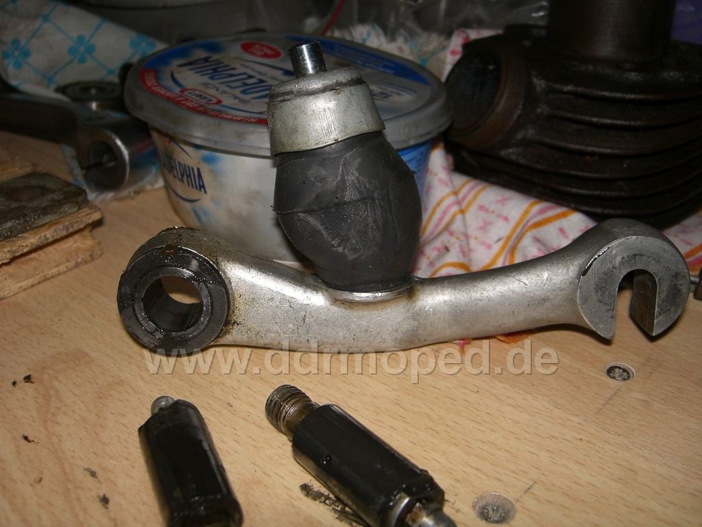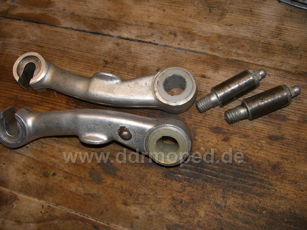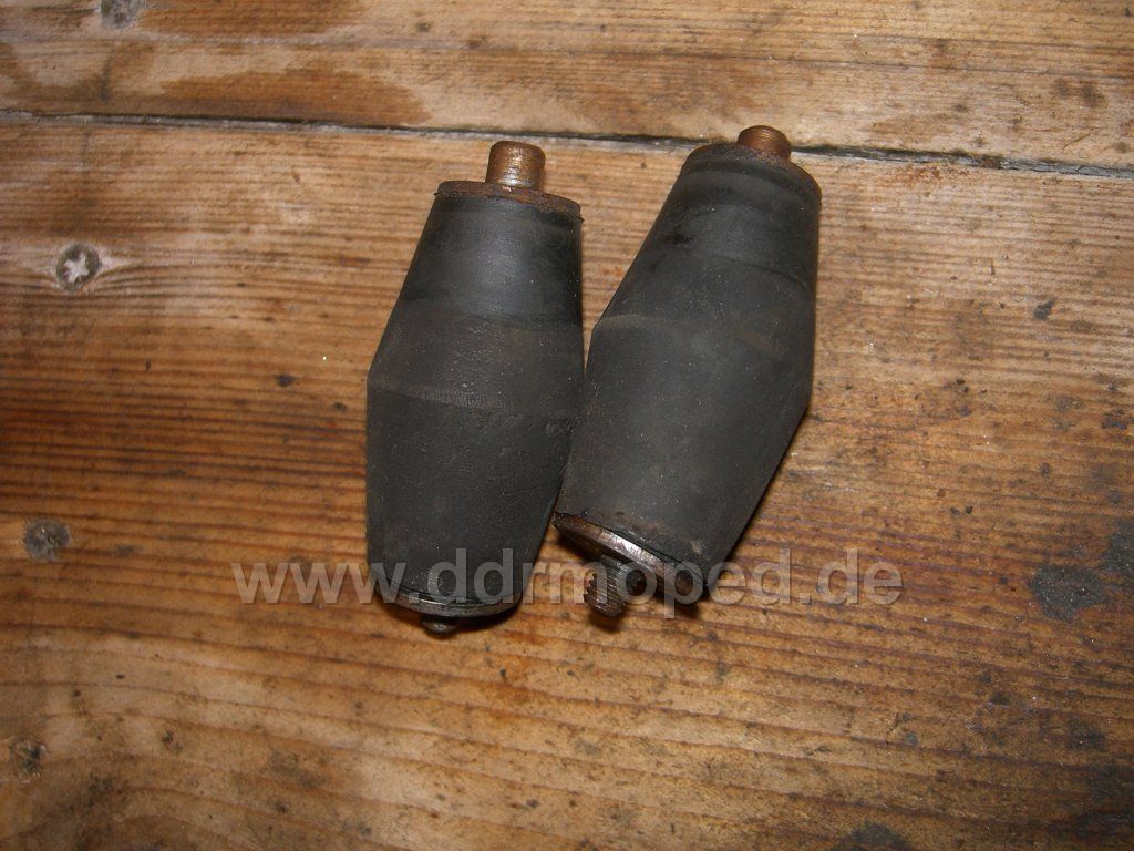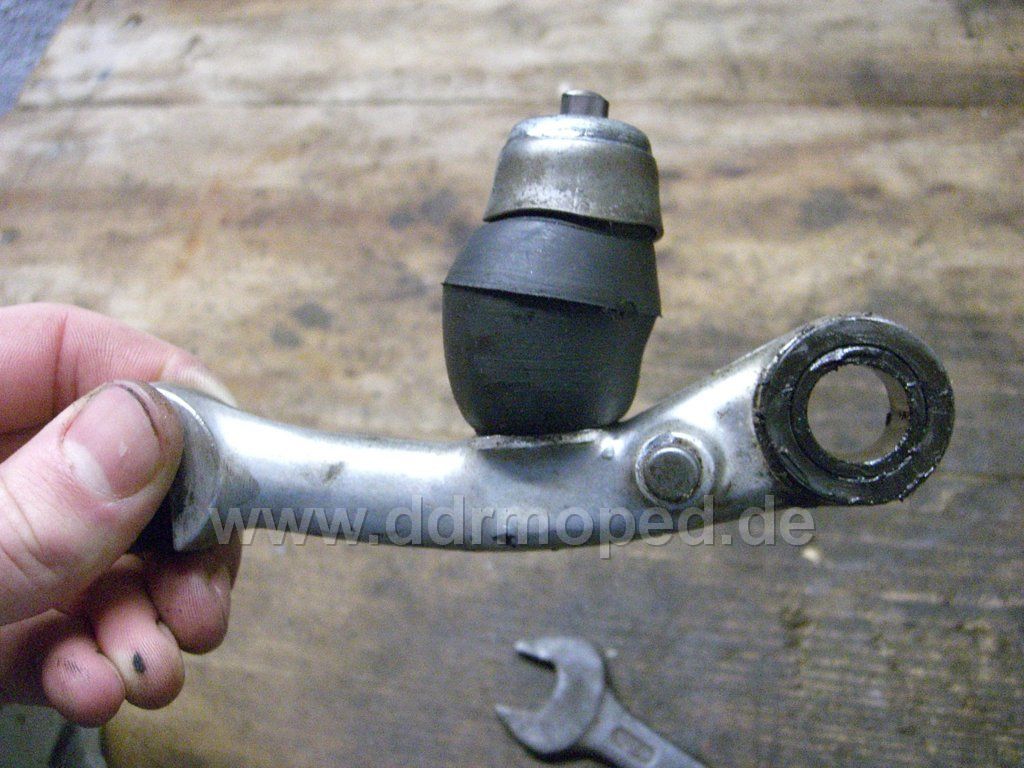 Seit langem habe ich heute mal wieder was am Essi gemacht Und zwar kam mir das Vorderrad immer so unruhig während der Fahrt vor und ich hatte mir letztens ja auch einen Reibahle ersteigert und so baute ich heute mal die Schwingenhebel aus. Vor einem gutem Jahr hatte ich die Gummipuffer schon mal ausgetauscht. Während des Ausbaus kam dann der Schock Was war nur mit den Puffern paasiert