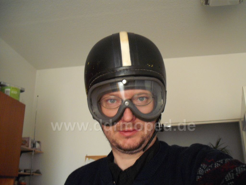 Hallo Raphael, Den Bambi-Helm hat mein Vater zu DDR-Zeiten gegen 2 Lederkappen getauscht. Eine Firmenadresse konnte ich leider nicht finden auch innen nicht. Der Bambi-Helm auf dem Bild haben wir schon ausgebeult da er viele Dellen hatte, wenn der Helm nur erzählen könnte  ,der hat bestimmt schon einiges mitgemacht. Den Helm benutzt mein Vater übrigens noch, wir fahren damit immer noch, mit einer alten Ardie, ich fahre mit meinem Perfekt-Helm hinten drauf mit. Sicher ist zwar anders aber wenn man schon so etwas fährt muss auch das Outfit passen, man fährt ja desinsiv. Genauere Bilder mach ich morgen, heute nicht mehr. Grüße aus Bochum